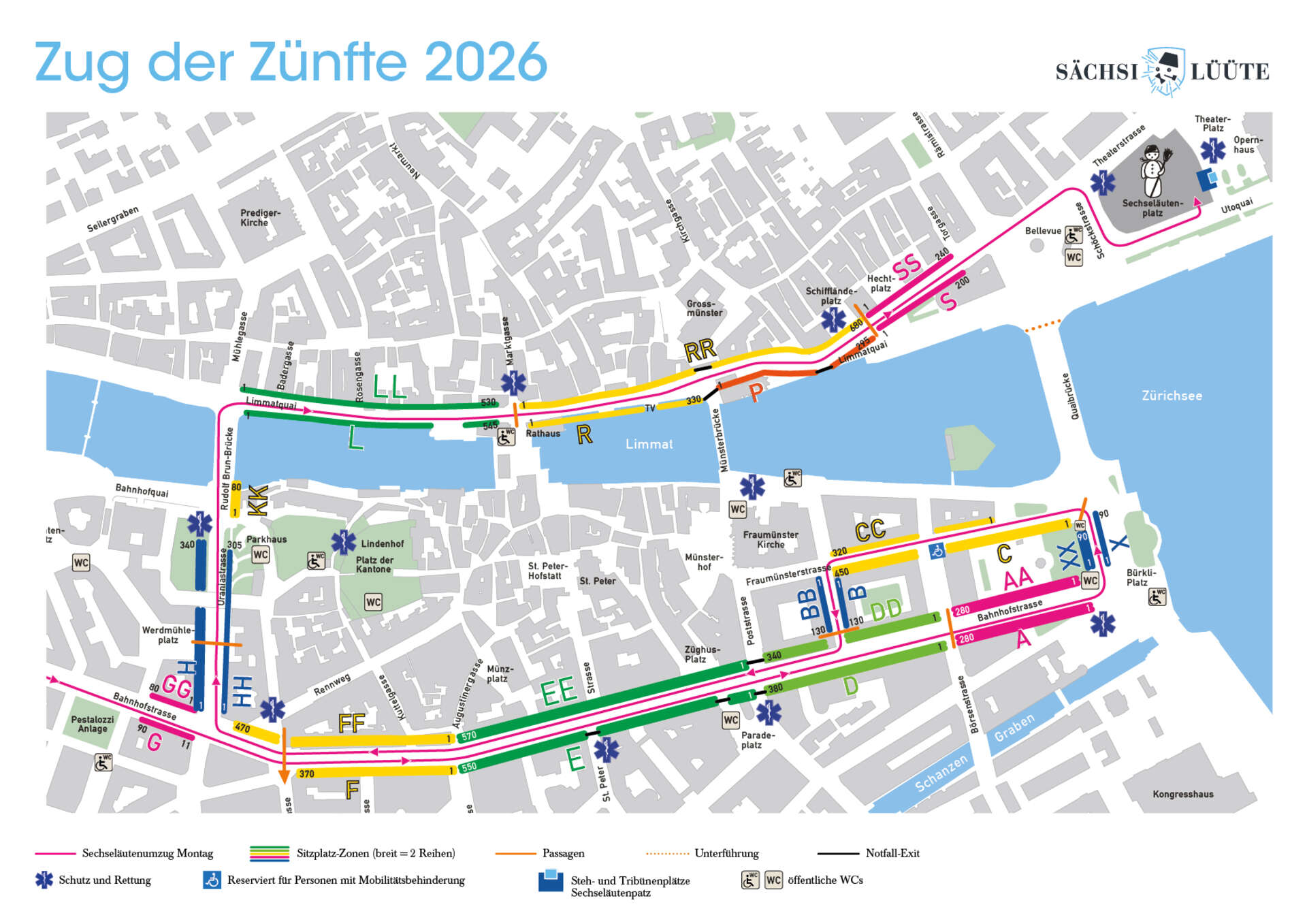 Rund 3´500 Zünfter in ihren farbenfrohen Kostümen, Trachten und Uniformen, über 350 Reiter, rund 50 ausschliesslich von Pferden gezogene Wagen und gegen 30 Musikkorps ziehen am Sechseläuten-Montag über Bahnhofstrasse und Limmatquai zum Sechseläutenplatz, wo die Verbrennung des Bööggs stattfindet. Der Zug zum Feuer ist ein sehenswertes Grossereignis, welches jedes Jahr Zehntausende von Zuschauern in die Stadt Zürich und Hundertausende vor die Fernsehbildschirme lockt.